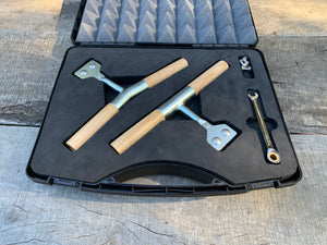 Powder coated stay to accompany the sawing stand. Solid 25 mm spike to drive into the ground and 5 mm thick flat bar to screw to the sawing log.